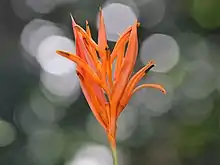 Generally curved, orange, small (4–7.5 cm long) flowers with free part of staminodes erect, floral bracts mostly caducous, and upper side of leaves often dark brown to black in herbarium material, lower side more or less lanuginose. In addition, the seeds are ellipsoid and relatively small (4–7 × 2–4.5 mm).