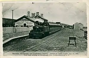 ![]() The first train arriving at Carndonagh from Derry on 1 July 1901 | |