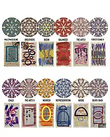 Her "GLYPH" series is a visual vocabulary system painted on vintage encyclopedia pages.[14] In 2019, her 300 glyphs were on display in the group show “Woven” at The Arts Center of Greenwood in South Carolina.[15]