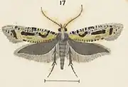 5. 1 2 3 Edward Meyrick (May 1886). "Descriptions of New Zealand Micro-Lepidoptera". Transactions and Proceedings of the New Zealand Institute. 18: 176–177. ISSN 1176-6158. Wikidata Q109405465.