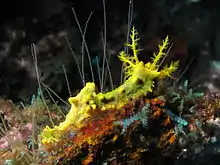 Colochirus robustus, commonly known as the robust sea cucumber or the yellow sea cucumber, is a species of sea cucumber in the family Cucumariidae. It is found in shallow seas in tropical parts of the central Indo-Pacific region. C. robustus belongs to the class Holothuroidea, a group of echinoderms called sea cucumbers and known for unusual behavior including evisceration, asexual reproduction, and regeneration. The robust sea cucumber has a soft body and lacks a spine, but it does have an endoskeleton consisting of microscopic spicules, or ossicles, made of calcium carbonate.[2] C. robustus has a respiratory tree that allows it to extract oxygen for respiration, using the anus to pump water. The robust sea cucumber is an important dietary staple for many East and Southeast Asian populations, and has been used for medicinal purposes for hundreds of years. Recent research suggests that peptides from C. robustus enhance the activity of the immune system. [3]