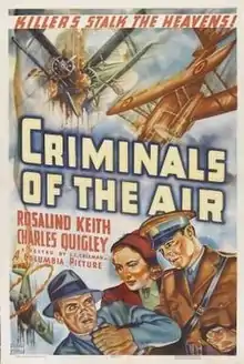 Criminals of the Air (aka Guardians of the Air and Honeymoon Pilot) is a 1937 American action film, directed by Charles C. Coleman. It stars Rosalind Keith, Charles Quigley and Rita Hayworth.[1] The film marked "Rita Hayworth"'s first onscreen credit; the actress, born Margarita Carmen Cansino, had previously used the stage name "Rita Cansino" or was uncredited in her prior 17 film appearances.[2] [Note 1]