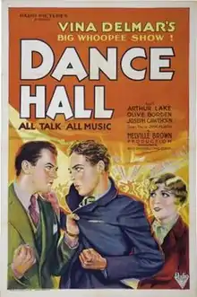 Dance Hall is a 1929 American pre-Code musical film directed by Melville Brown and written by Jane Murfin and J. Walter Ruben, based on the short story of the same name by Vina Delmar.[4][5] The film centers a love triangle with a shipping clerk competing with a dashing aviator for the affections of a young taxi dancer.[6][7] It was Radio Pictures' second to last release of the decade, and was a critical and financial flop.[N 1]