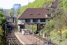 Darmstadt South station (German: Bahnhof Darmstadt Süd) is in the city of Darmstadt in the German state of Hesse on the Main-Neckar Railway. The station building is protected under the Hessian Monument Protection Act. It is classified by Deutsche Bahn as a category 5 station.[2]