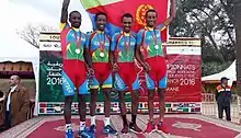 Eritrean National Cycling Team or ENCT (Tigrinya ሃገራዊት ጋንታ ብሽክለታ ኤርትራ):is the national cycling team represented Eritrea in Continental and International Cycling races.[1] ENCT is a member of the African Cycling Confederation and the Union Cycliste Internationale[2][3][4]