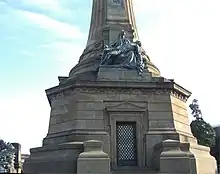 The Expiatory Chapel in Monza is a monument-chapel built to atone and commemorate the site at which the king Umberto I of Italy was murdered on July 29, 1900, by the anarchist Gaetano Bresci. It stands near the entrance to the Royal Villa of Monza on Viale Regina Margherita and Via Matteo da Campione. Umberto's son Vittorio Emanuele III commissioned the aged architect Giuseppe Sacconi, and the work was completed by his pupil Guido Cirilli in 1910. Obelisk-like crosses emerge from a stone chapel, and are surmounted by bronze crown and royal symbols of the House of Savoy. The entrance is surmounted by a Pietà by the sculptor Lodovico Pogliaghi.