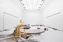 A shift in Díaz’s perception of technology came with the project "Eccentric Gravity"[16] (2015) curated by Jérôme Sans and Jen Kratochvil, a site-specific architectural intervention in the historical Renaissance Royal Belvedere Pavilion.