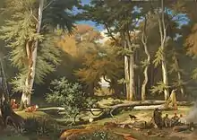 Gabriel Bouret, Figures around a camp fire in a Forest, 1843.