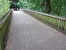 By 1911 the truss bridge was covered with a roof and walls for protection from the elements and remained in use until the concrete Pacific Highway Bridge of 1920 was completed. "Charcoal haulers would cross the covered bridge and follow the trail along the river..."(Mary Goodall, Oregon's Iron Dream). Thereafter, the covered bridge was used by those on foot until it rotted and collapsed in the 1930s. Following World War II a replacement was built and used until 1975 when it became unstable and was removed by the National Guard.[10]