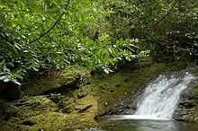 It is quite a fast-flowing river with many small waterfalls and deep pools. The bedrock is composed of granite in the upper parts, becoming dark shale lower down.[2] It flows through Donard Forest and Donard Park and is crossed by five bridges. The path that runs alongside the river is commonly used by walkers climbing Slieve Donard.[3]