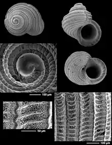 - ↑ Gofas, S. (2013). Haplocochlias loperi Rubio, Rolán & Lee in Rubio, Fernández-Garcés & Rolán, 2013. Accessed through: World Register of Marine Species at http://www.marinespecies.org/aphia.php?p=taxdetails&id=737556 on 2013-10-21