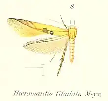- ↑ Savela, Markku. "Hieromantis fibulata Meyrick, 1906". Lepidoptera and Some Other Life Forms. Retrieved 9 October 2018.
