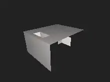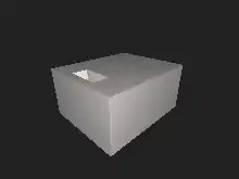 The house is made of 2-dimensional panels, and has two rooms. The upper room may be entered from the bottom face, while the lower room may be entered from the upper face. There are two small panels attached to the tunnels between the rooms, which make this simplicial complex contractible.