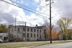 The oldest buildings of this complex, the two brick buildings, were standing here by 1885, and were probably built by the Connecticut Motor Company, a maker of electric motors. In 1901, George Wood and John Hurley began production of solid-headed screwdrivers here; their company was purchased by Stanley Tools in 1905, continuing operations in the left brick building to make screwdrivers and chisels through the first half of the 20th century. The large forge building was added about 1915. The right brick building became part of Thompson Drop Forge, another local manufacturer. Industrial facilities of this type once dotted Southington's landscape, and are now becoming increasingly rare.[2]