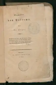 - Hager, Josef (1799). Gemälde von Palermo. Berlin: Heinrich Fröhlich.