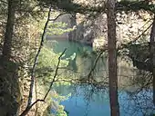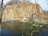 The Königshain Hills (German: Königshainer Berge, Upper Sorbian: Limas) lie in Eastern Upper Lusatia west of the town of Görlitz in the county of the same name. They are located north and south of the village of Königshain after which they are named, and are an extensive, mainly wooded granite region. Their highest points are the Kämpferberge (415m above sea level) and the well-known Hochstein, 406m above sea level. The entire hill range has been a protected area since 1974. In a part (Elysium) of the former Firsten Quarry there is a bird reserve.