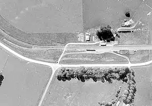 The area was part of the Ngāti Raukawa rohe.[6] In 1877 land was acquired for a railway ballast pit at Kopua.[4] In 1879 Kopua was a clearing of about 1 mi (1.6 km) by ¼ mile[7] in the Seventy Mile bush.[8] Sawmills were set up as soon as the line opened.[9] Wilding & Bull had a mill at Kopua from 1881[10] to 1884. In 1898 there were skids for loading logs.[4] As the bush was cut out, the mills gradually moved south. Nelson Bros. moved theirs in 1895.[11] From 1898 Gammon & Co had a tramway to the station yard.[4] Their mill left Kopua in 1899.[12] The photo below shows that some bush remained in 1910, but the photo above shows it was gone by 1966.
