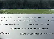 - ↑ "South Pool: Panel S-67: LeRoy W. Homer Jr". Memorial Guide: National 9/11 Memorial. Archived from the original on July 27, 2013. Retrieved October 28, 2011.