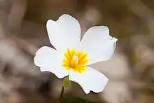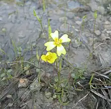 Leavenworthia stylosa typically blooms from March to May.[2][3] The flowers are about 1 inch wide and are white or yellow in color with a yellow center. The tips of the petals are notched. Yellow varieties are found more commonly north of Nashville, while white varieties are found more commonly south.[2]