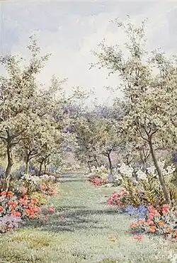 Lilian Stannard RI (1877-1944) was an English illustrator and painter, primarily of watercolours. She was one of the select group of 'garden painters' that included George Samuel Elgood and Helen Allingham[1] whose primary subject was the English garden. A prolific artist, whose work became widely known through reproductions, first showed at the Royal Society of British Artists in 1898 and exhibited twenty-eight watercolours of garden scenes at the Royal Academy of Arts between 1902 and 1930. She also exhibited at the Society of Women Artists, Royal Birmingham Society of Artists, Walker Art Gallery, Royal Cambrian Academy and held a large number of solo shows, especially at the galleries of Arthur Ackermann & Son and the Mendoza gallery in London.[2] Illustrations of her work were used for a series of postcards and were included in Horace and Walter Wright's popular gardening volumes: The Perfect Garden (1908),[3] Beautiful Flowers and How to Grow Them (1909)[4] and Popular Garden Flowers (1911)[5]