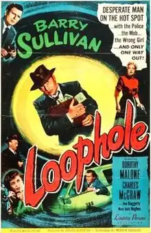 Loophole is a 1954 American film noir crime drama starring Barry Sullivan and Dorothy Malone. The film was directed by former editor Harold D. Schuster. Mary Beth Hughes plays the film's femme fatale.[1] It was shot in black-and-white and produced by Allied Artists Pictures, a company that generally specialized in B-movies.