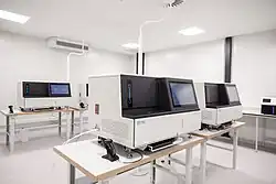 In 2016, MGI was founded as a subsidiary of BGI Group.[4][5] It manufactures high-throughput genetic sequencing systems and other products for use in the life sciences and health care sectors.[6][7] As of July 2022, the company's operation is divided into two primary business segments: genetic sequencers and laboratory automation systems.[8][9]