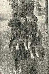 Three photographs of the dead children are known to exist, taken from slightly different angles. The photographs of the crime scene came to be known as the "wreath of children".[1] The first publication of one of the photographs accompanied Witold Łuniewski's 1928 article in the journal Rocznik Psychiatryczny. In 1948, another of the photographs was used in Wiktor Grzywo-Dąbrowski's A Manual of Forensic Medicine for Students and Doctors to illustrate homicide by hanging.[1]