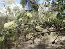Melaleuca incana subsp. tenella foliage and flowers | |