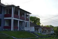 - North Danville two-story 1895 frame home built with other identical homes. It has a two-story full-width porch and dual entrances.