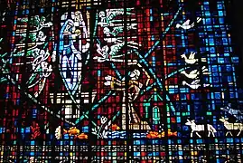 The main attraction of Notre-Dame de Lourdes church is the glasswork of world-famous stained glass artist Gabriel Loire.[3] Its long concrete entrance is also noteworthy.[4]