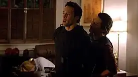 ![]() Chin Ho Kelly (right) placing Steve McGarrett (middle) under arrest for murder of Governor Jameson (left) | |
