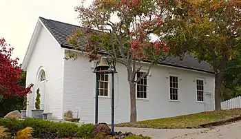 The Old Santa Rosa Catholic Church and Cemetery is a historic church building and cemetery on Main Street in Cambria, San Luis Obispo County, California. Built from 1870 to 1871, the church was the first in Cambria and is one of the oldest remaining buildings in the town. The church has a simple Classical Revival design with clapboard siding, a gable roof, a boxed cornice and frieze, and an arched entrance topped with a fanlight. The church's cemetery is behind the church building.[2][3]