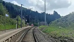 Paradiso railway station (Luxembourgish: Gare Paradiso, French: Gare de Paradiso, German: Bahnhof Paradiso) is a railway station in the commune of Wiltz, in north-western Luxembourg. It is located in the countryside, isolated from the town of Wiltz, but serves several sites of the Wiltz International Scout Centre. It is operated by Chemins de Fer Luxembourgeois, the state-owned railway company.