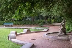 The park was constructed on a 19th-century property by the rich industrial Gillet family, on the land above their factories. The park was designed in 1913 and included about 1,200 trees. In the center of the park they had a large house built, known as Villa Gillet.[1] The park and villa were sold to the city in 1973. Today the house is the base of operations of the Villa Gillet cultural institution,[2] and the park is open to the public.[3]