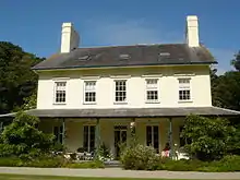 The house was built in 1780 for William Griffith (1748–1816), probably designed by Joseph Bromfield, and probably incorporating elements of a previous house. It is built in two storeys with attics, rendered and painted white. Like the other two houses thought to have been designed by Bromfield (Broom Hall and Nanhoron), the house has a long verandah at the rear supported by elegant iron pillars. A notable feature of the grounds is the avenue of beech trees leading up to the house.[2] By the end of the 19th century the house belonged to a John Savin. In the 1940s it belonged to a show-business dancer who created a Japanese garden at the rear.[2] The gardens are designated Grade II on the Cadw/ICOMOS Register of Parks and Gardens of Special Historic Interest in Wales.[3]