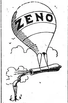 Professor Zeno (August 1, 1875 – September 26, 1901) was an early Aeronaut at the turn of the 20th century known for his performance of suspending from a trapeze below a parachute attached to a Hot Air Balloon, which he would then and cut loose from to float back to Earth while hanging from the trapeze beneath the parachute. He also performed the balloon cannon act in which he, again equipped with a parachute, was shot from a cannon suspended from a hot air balloon only to float safely back to Earth.