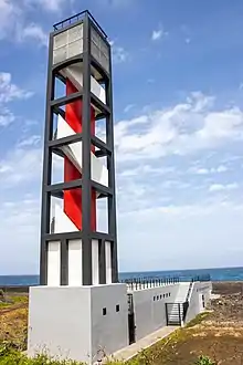 The Puerto de la Cruz Lighthouse (Spanish: Faro de Puerto de la Cruz) is an active lighthouse in Puerto de la Cruz on the northern coast of Tenerife in the Canary Islands. This modern lighthouse is situated within a seafront car park, to the west of the small port in the town. It is one of seven lighthouses which mark the coastline of Tenerife, and lies between two other modern lighthouses of Punta del Hidalgo to the northeast, and Buenavista to the west.[1]