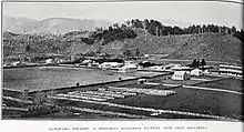 In 1885 the MP for Whanganui and Minister for Lands, John Ballance,[14] encouraged Charles L Pemberton to form a Special Settlement Scheme to develop these "waste Lands".[15] On 10 February 1885, a meeting was called in Whanganui[14] and formed the Pemberton Small Farms Association to buy the Pemberton Block of 7,245 acres (2,932 ha).[16] C. L. Pemberton had said the Otamakapua block was suitable. He and Charles Feild, on a Government party making the road through Kimbolton for the Palmerston North Small Farm Association, had seen the block from Peep-o-Day. Pemberton climbed a tree and drew a rough plan of the country, which was sent to the Government. They surveyed sections of 50 to 150 acres (61 ha) and sold them at £1 per acre, with 2s 6d an acre added to pay the cost of the survey.[14] A draw for them was held on 27 September 1886,[15] by a process considered to be unfair when examined in 1903.[17] Successful applicants were given 10 years to pay.[14] Dudley Eyre was secretary of the Association[14] and collected £1,057 in survey fees,[18] but absconded with the money to the USA[19] in 1888.[20] He had been a Thames goldfield surveyor, before moving to Whanganui.[21] He seems to have moved to Salt Lake City[22] and then San Francisco, where his wife inherited some money.[23] He was charged with the theft in 1901,[24] but the charge was dropped, as he was said to have returned the money and moved to Waikato.[25] The government decided to be lenient with payment of the stolen fees.[26] An 1897 report said the Pemberton Improved-farm Settlement was mostly under grass, with 13 farms, 43 people, 112 cattle, 10 horses, 19 pigs and 654 sheep.[27]
