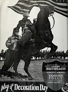Ranson's Folly is a 1926 American silent Western film produced by and starring Richard Barthelmess and co-starring Dorothy Mackaill. It is based on a Richard Harding Davis novel and 1904 play, Ranson's Folly, and was filmed previously in 1910 and in 1915 by Edison.[1][2][3]