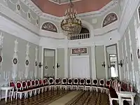 The interiors of the second floor have been restored in analogy to the surviving works of Charles Cameron. In the ceremonial halls of the second floor, the focus is on the era of the hetmanate.[3]