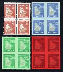 In 1980, Rhodesia was renamed Zimbabwe following the end of the civil war. Initially it used Rhodesian revenues with the name obliterated by hand in ink, but in 1981 a new design showing the Zimbabwe Bird was issued. Since around 2000 perforated stamps were withdrawn and replaced by rouletted issues on coloured paper. Due to inflation, these have values up to $200,000.