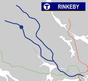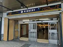 Rinkeby metro station is a station on the blue line of the Stockholm metro, located in the district of Rinkeby. The station was opened on 31 August 1975 as part the first stretch of the Blue Line between T-Centralen and Hjulsta. The trains were running to Hallonbergen and then to Rinkeby via a track which is currently used for the rail yard access.[2] The distance to Kungsträdgården is 12.3 km (7.6 mi).