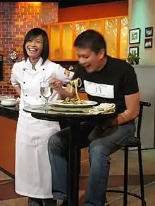Rosebud Benitez is a Filipina celebrity chef and the host of Quickfire, a 10-minute television cooking show broadcast several times daily on GMA News TV (formerly known as Q, now GTV), a sister station of GMA Network.[1] The show is considered to be one of the most easily recognizable productions of the alternative network, with an offshoot bestselling DVD compilation of highlight episodes.[2] Before Quickfire, Benitez was part of the culinary group program Ka-Toque, Q’s first-of-a-kind that spawned a whole new generation of broadcast cuisine productions and chef-hosts.[3] Though wedged within a smorgasbord of equally sociable young chefs in Ka-Toque, Benitez became the first in the group to be given a solo show and the only non-actress to be invited by GMA Artist Center to join its register of contract stars.[4]