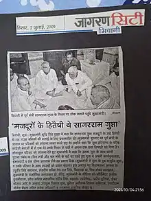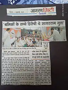 Gupta was a well known labour leader in Haryana. He undertook several campaigns and went to jail many times for the rights and welfare of laborers. During working as President of Haryana INTUC, he published a weekly journal "Parishrami Sansaar" for four years.