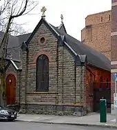 The congregation was founded in 1889 by missionaries as Portland's first English-speaking Lutheran church. The first pastor was Rev. M. L. Zweizig. The cornerstone for the present building was laid in May 1907. Many of the original fixtures are still in use in the building, including the marble baptismal font and oak pews. The church grew and thrived through the first half of the 20th century, and in 1956 added an educational annex, with space for classrooms and offices.[2] The church was forced to remove the tower of the main building in 1951 due to structural deterioration. The tower was replaced in 1974 using historic photographs to match the original style and design as far as possible.[3]