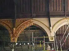 - Nave view west, towards the Cafe, with Library at first floor level. The Timber Gallery balustrade surrounds the nave at first floor level