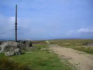 Stanedge Pole also known as Stanage Pole (grid reference SK2468784429) is a landmark on Hallam Moors close to Stanage Edge in South Yorkshire, England. Standing at a height of 438 metres (1,437 feet), it marks the border between Derbyshire and South Yorkshire and can be seen for several miles around.