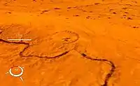 ![]() Landsat image of the Talemzane crater; screen capture from NASA World Wind | |