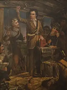 The Texian Militia was the militia forces of Texian colonists in the Mexican state of Coahuila y Tejas from 1823 to 1835 and the inaugurate force of the Texas Military.[1] It was established by Stephen F. Austin on August 5, 1823 for defense of the Old Three Hundred colonists against the Karankawa, Comanche, and Cherokee tribes; among others.[2] Its most notable unit, the Texas Rangers, remained in continuous service of Texas Military Forces until 1935.