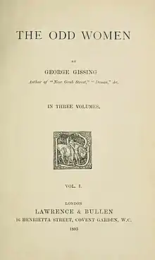 The Odd Women is an 1893 novel by the English novelist George Gissing. Its themes are the role of women in society, marriage, morals and the early feminist movement.[1]